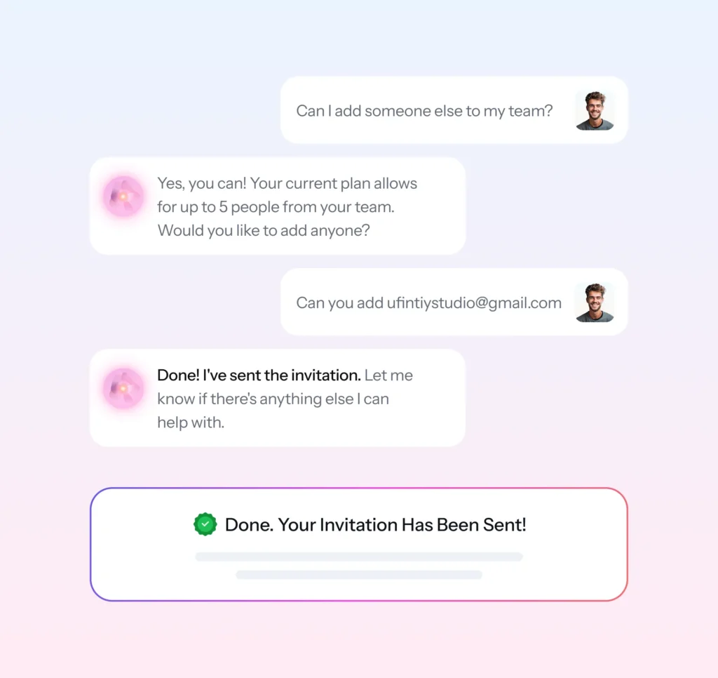 From answering questions to executing actions, the agent integrates with your systems to get things done.