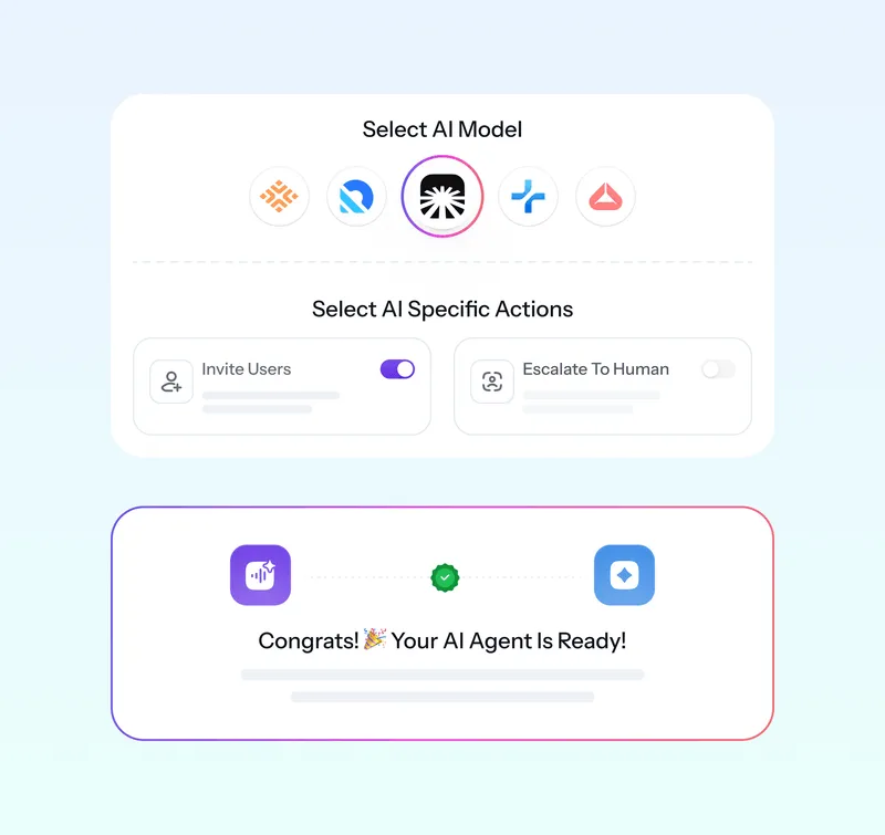 Train your AI agent with your business data, define its actions, and deploy it to serve your customers instantly.